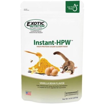 HPW เป็นอาหารที่อุดมด้วยวิตามิน มีเนื้อนุ่มลักษณะคล้ายพุดดิ้ง อาหารนี้มีส่วนผสมทั้งหมดมาจากสูตรอาหารดั้งเดิม คือ ไฮโปรตีนวอมบารู ซึ่งนิยมใช้ในชูการ์ไกลเดอร์ไปทั่วโลก ชูการ์ไกลเดอร์ชอบกลิ่นของวานิลลา และมีส่วนผสมอื่น ได้แก่ น้ำผึ้ง ไข่ เกสรผึ้ง และเสริมโปรตีนสูงด้วย ZooPro High Protein Supplement เป็นอาหารที่เรียบง่ายพร้อมนำไปใช้ คุ้มค่าทั้งด้านราคาและเวลาในการดูแลชูการ์ ไกลเดอร์ HPW สามารถให้แบบสดหรือแช่แข็ง โดยใช้จานถาดน้ำแข็ง
